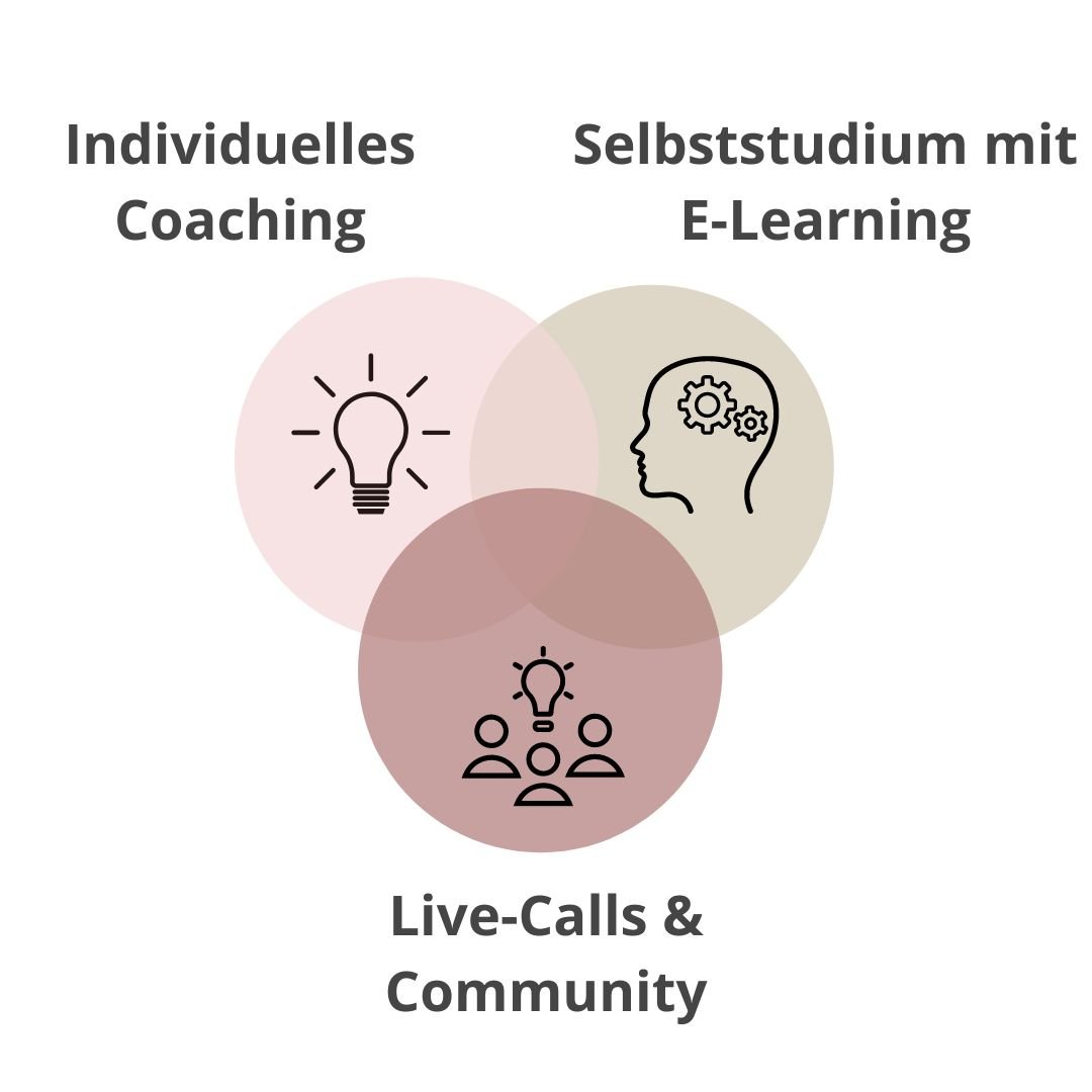 3. In regelmäßigen Live-Calls findet ihr Ankerpunkte für euren Alltag. Wir üben miteinander neue Verhaltensweisen ein und klären eure Fragen. Über unserer Community Plattform erlebt ihr Kontakt und Austausch mit anderen Menschen, die vielleicht gerade was ähnliches erleben wie ihr.